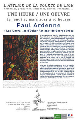 «Une heure / Une œuvre» est une série de rencontres autour d’une œuvre - architecturale, littéraire, poétique, cinématographique, photographique, chorégraphique... - proposée par des artistes, des écrivains, des danseurs, des acteurs de la vie culturelle... invités à venir partager un «coup de cœur», un «déclencheur», une passion... le temps d’une heure, avec une approche sensible, non académique, d’une façon conviviale et informelle...